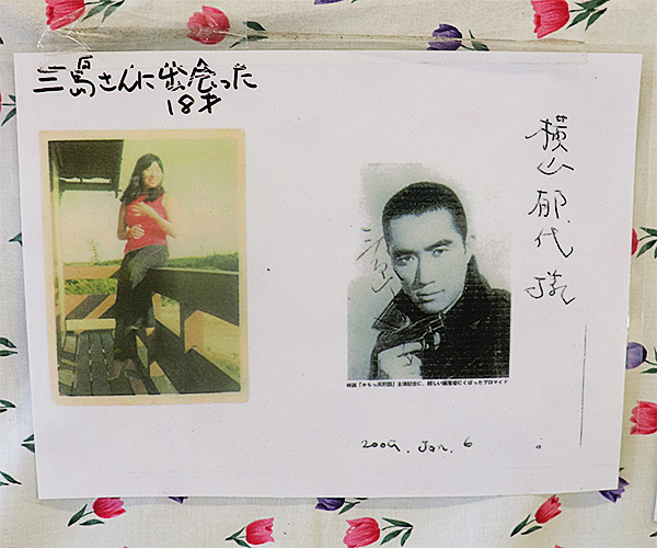 店内に飾られている18歳の横山郁代さんと三島由紀夫の写真
